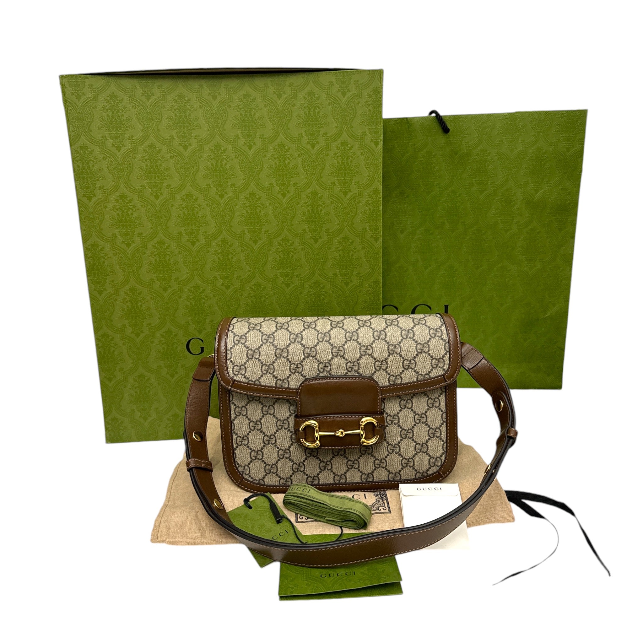 GUCCI HORSEBIT 1955 SMALL CROSSBODY/SHOULDER BAG Condition : Very Good Exterior : Very beautifully bag , slightly used, might be some minimal signs of wear on the hardware, slighly scratches but kept in shiny golden, Interior : Clean, minimal signs of wear. No unpleasant smell (The scent could be slightly different…