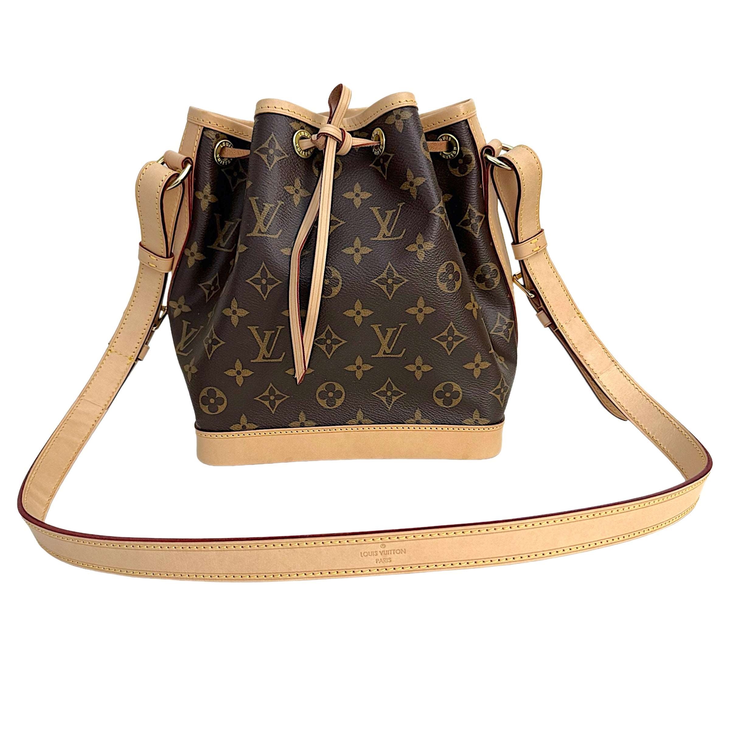 Louis Vuitton Noe BB Monogram Bucket Bag Louis vuitton Noe BB bucket bag is charming and modern version. The leather strap adjust for comfortable shoulder or crossbody wear. Condition : Excellent Exterior : Minimal signs of wear, light beautiful leather trim, the bag is sturdy and gold hardware is kept…