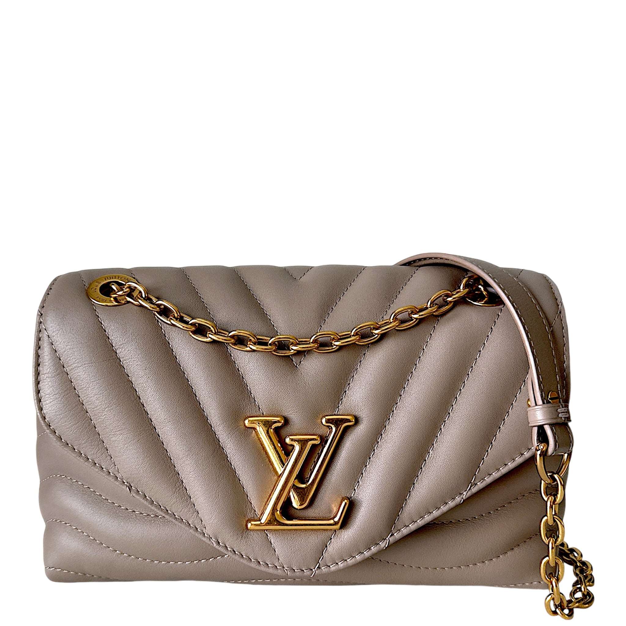 Louis Vuitton New Wave Chain Bag NM Taupe Condition : Excellent Exterior : Minimal signs of wear, beautiful calfskin leather without Scratchesany scratches or fading. The bag is sturdy, no creasing Gold hardware may has som minor signs of wear, Crutches, micro scratches Interior : Very clean, minimal signs of…