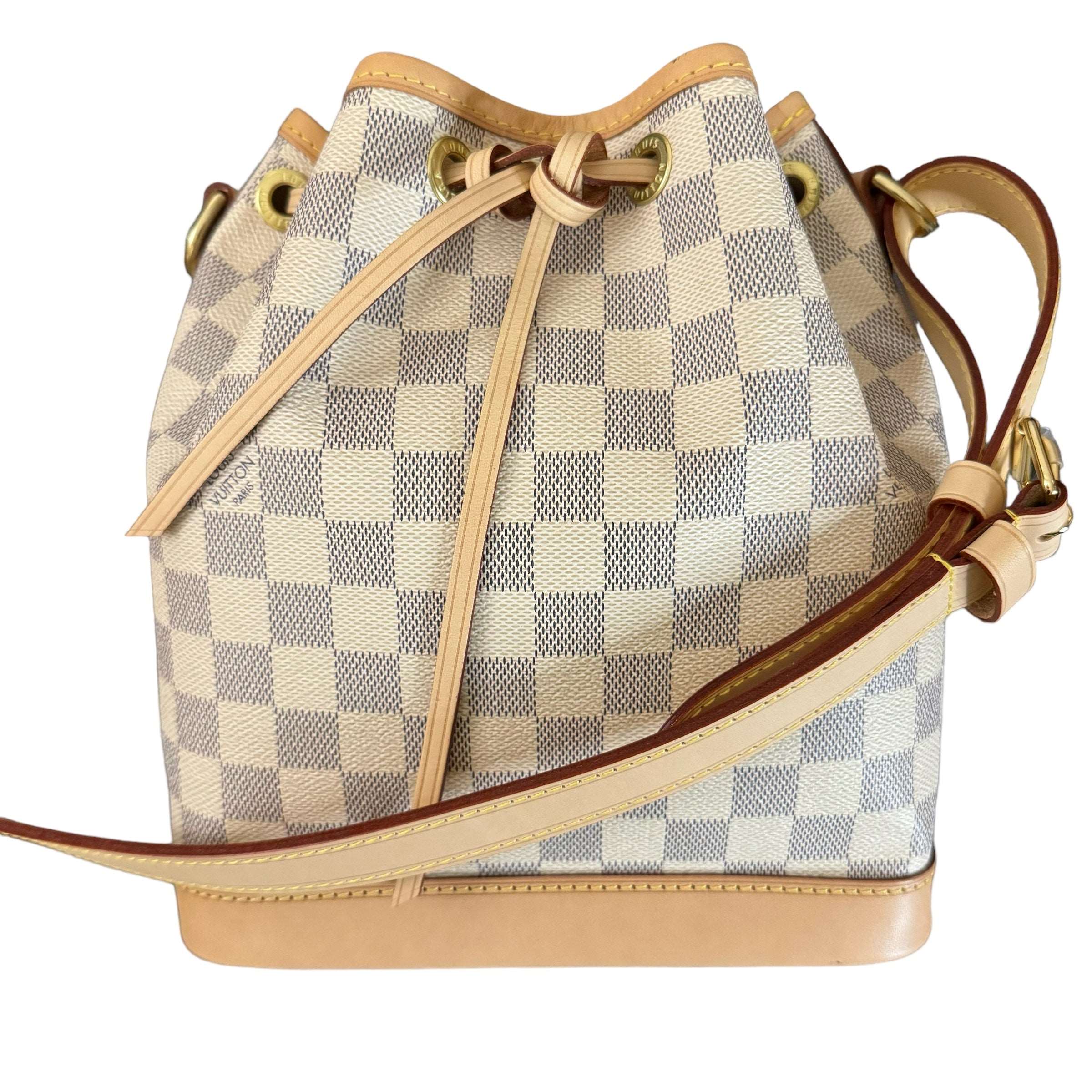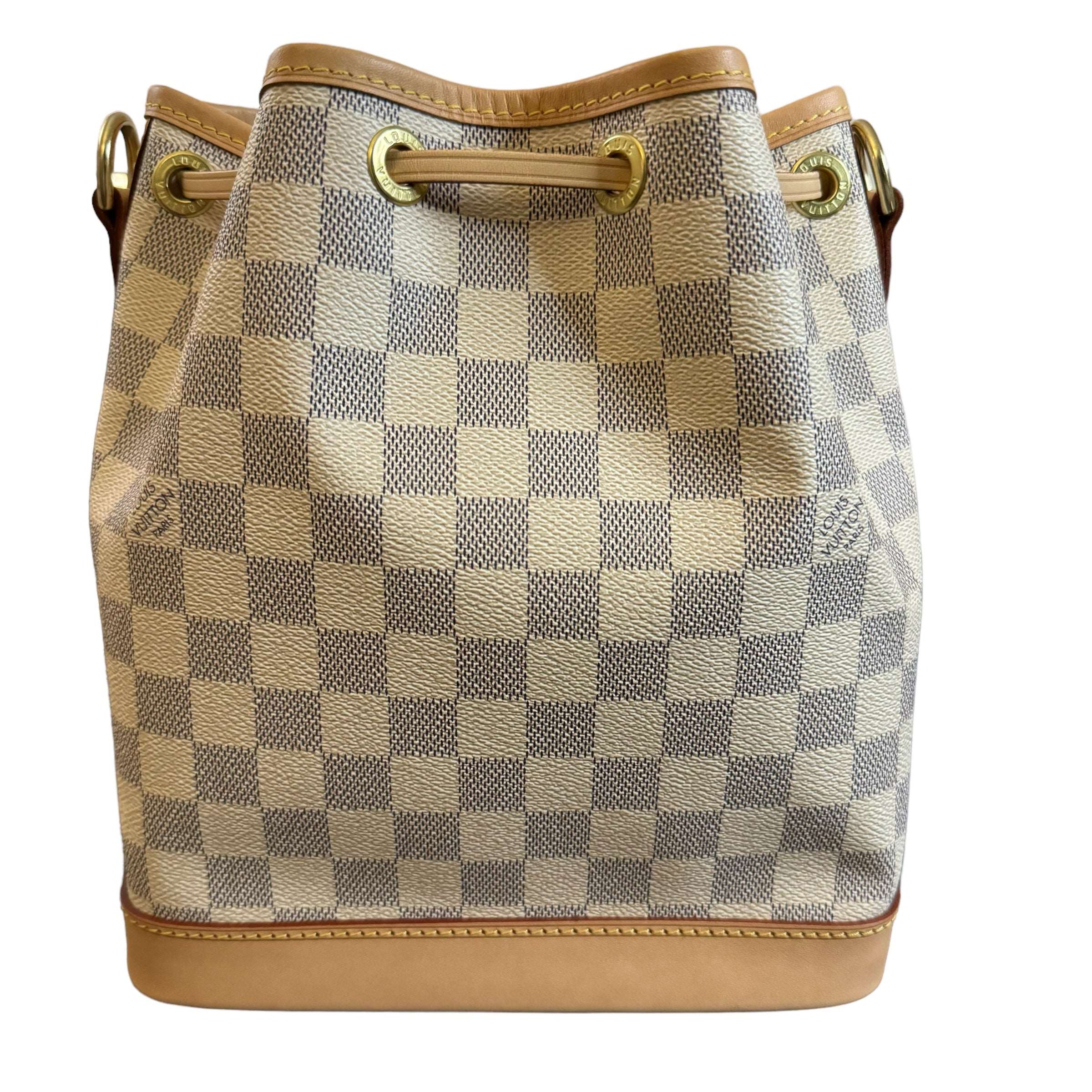 LOUIS VUITTON NOÉ BB DAMIER AZUR CANVAS BAG Condition :Almost like new Exterior : Invisible signs of wear, leather trim is in excellent condition. No flaws to mention. Gold hardware is kept in shiny golden. Interior : Very clean Microchip Made in France Comes with all packaging and the original…