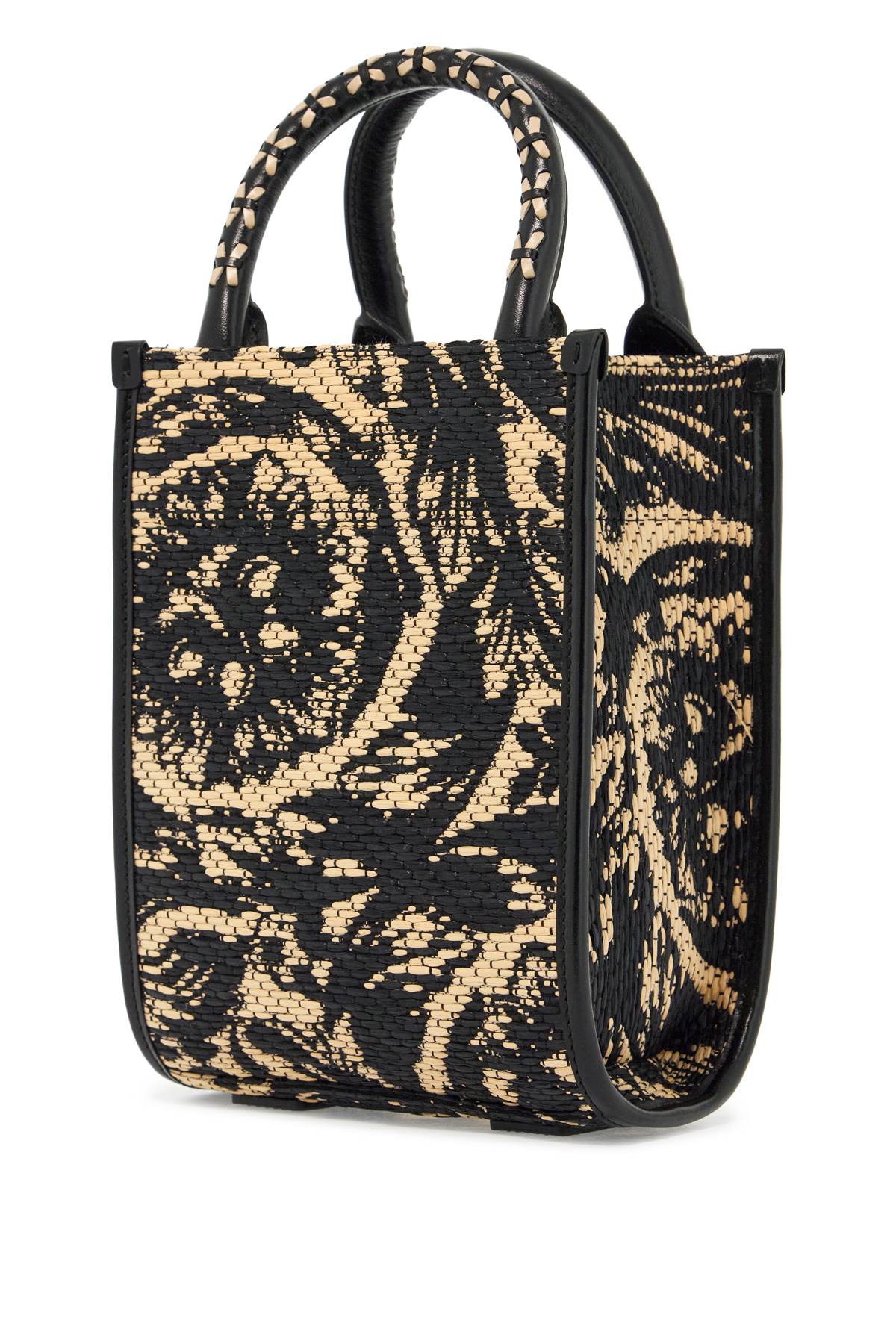 This chic tote is your new go-to for effortlessly stylish outings. Crafted with a luxurious jacquard Barocco pattern and a touch of ’90s nostalgia, it’s both fashionable and functional. You’ll love the hand-stitched details and the versatile strap options. Woven raffia with jacquard Barocco pattern Iconic ’90s vintage logo leather…