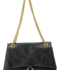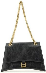 Meet your new favorite everyday bag. The CRUSH MEDIUM BAG is crafted in soft black calfskin with antique-gold hardware, featuring an adjustable chain shoulder strap and three interior compartments to keep you organized on the go. With a front flap closure and B logo detail, this bag is both stylish and practical.