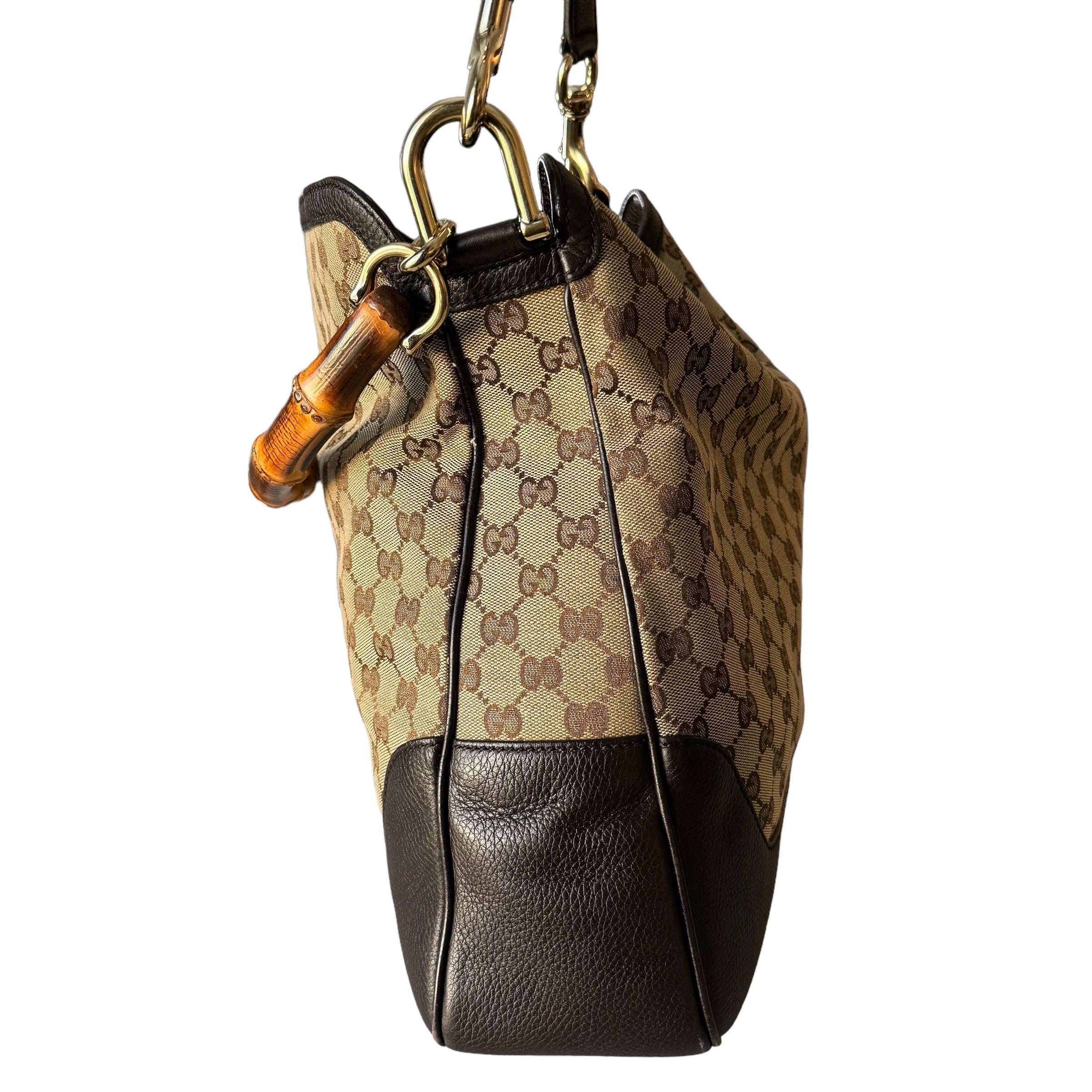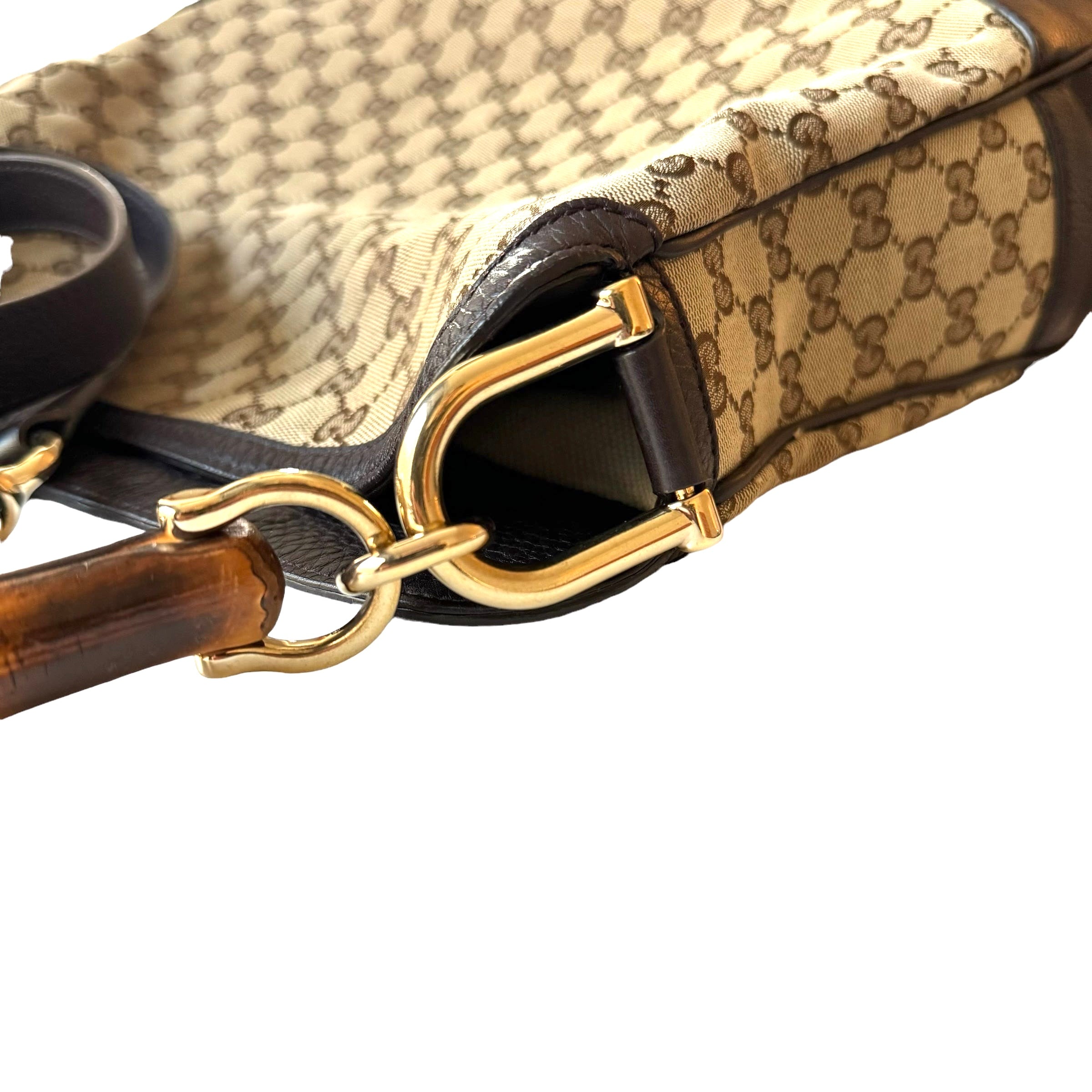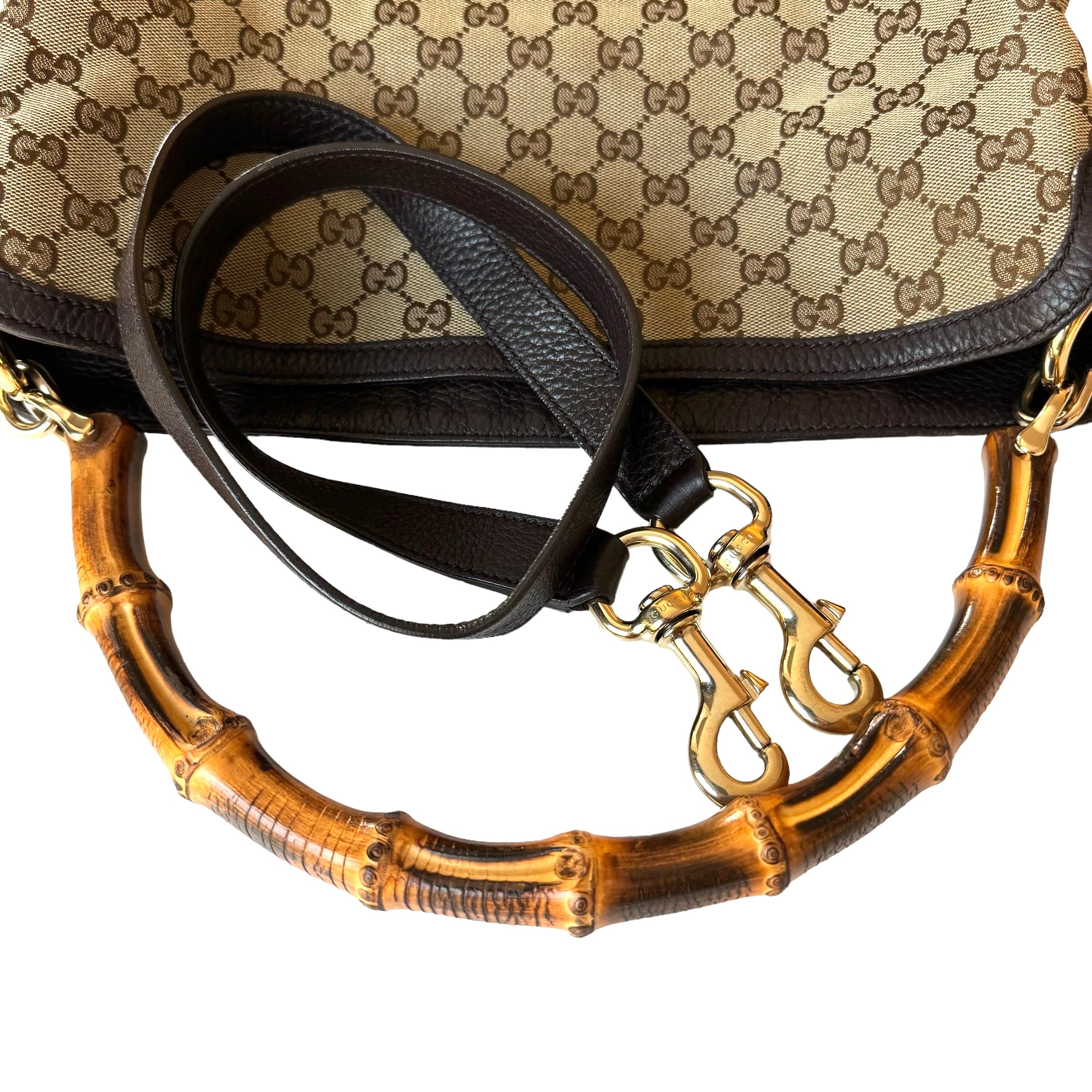 Gucci GG Brown Canvas Bamboo With Detachable Strap Bag