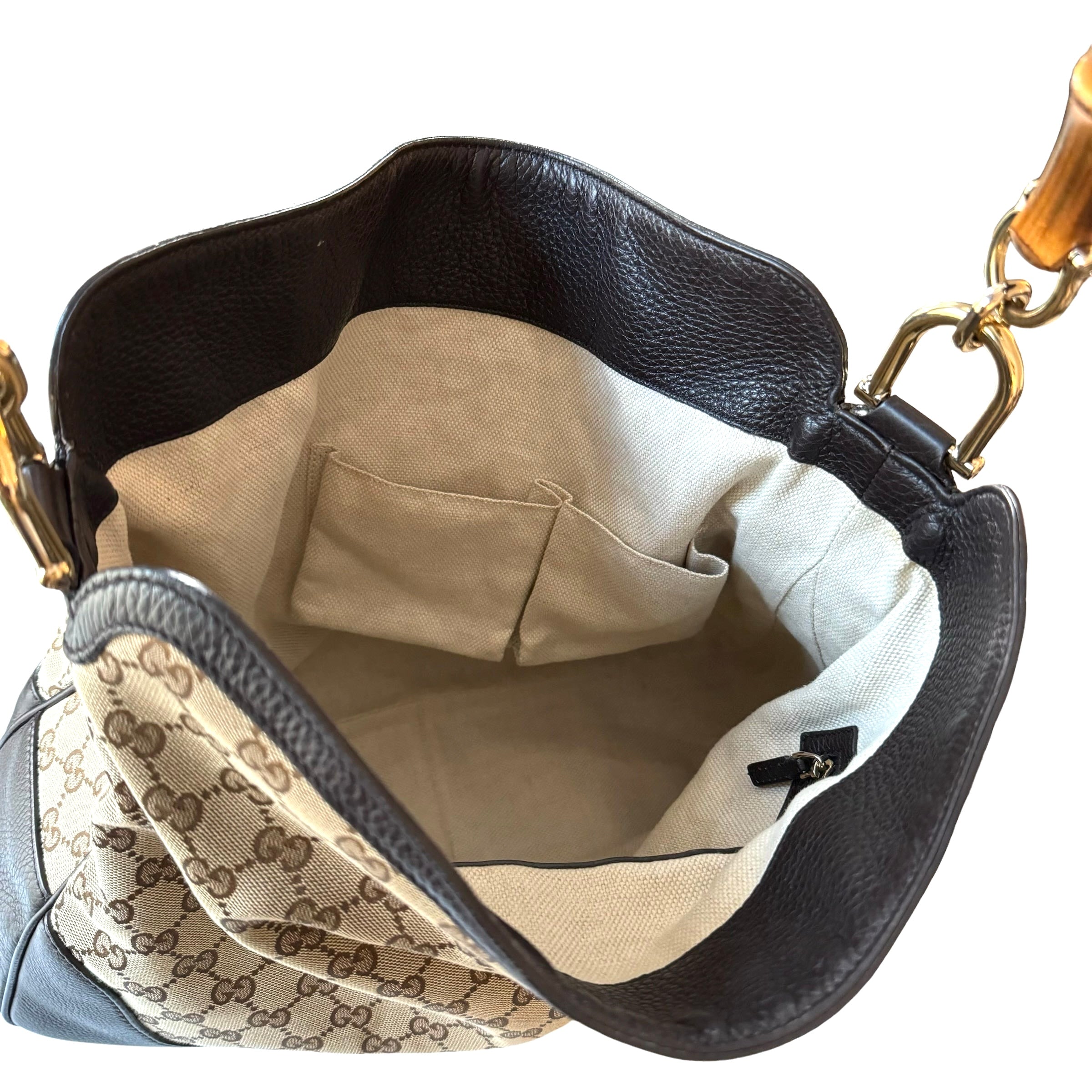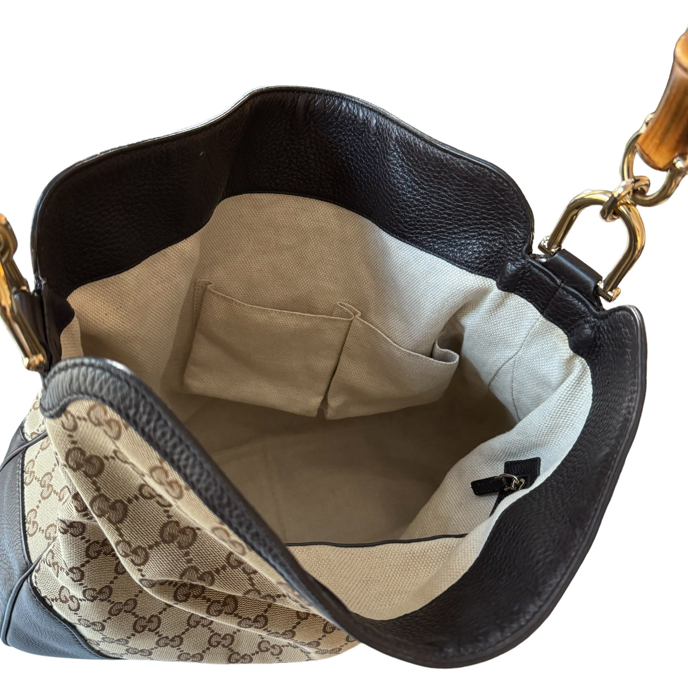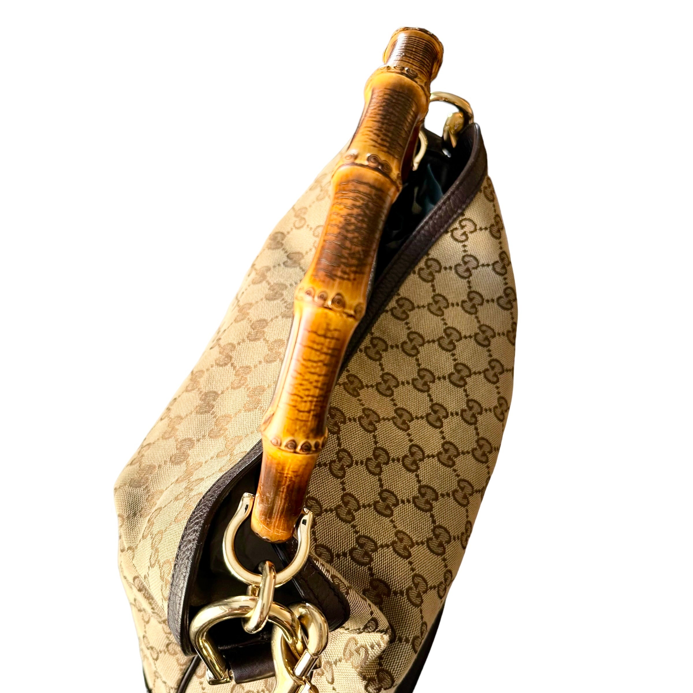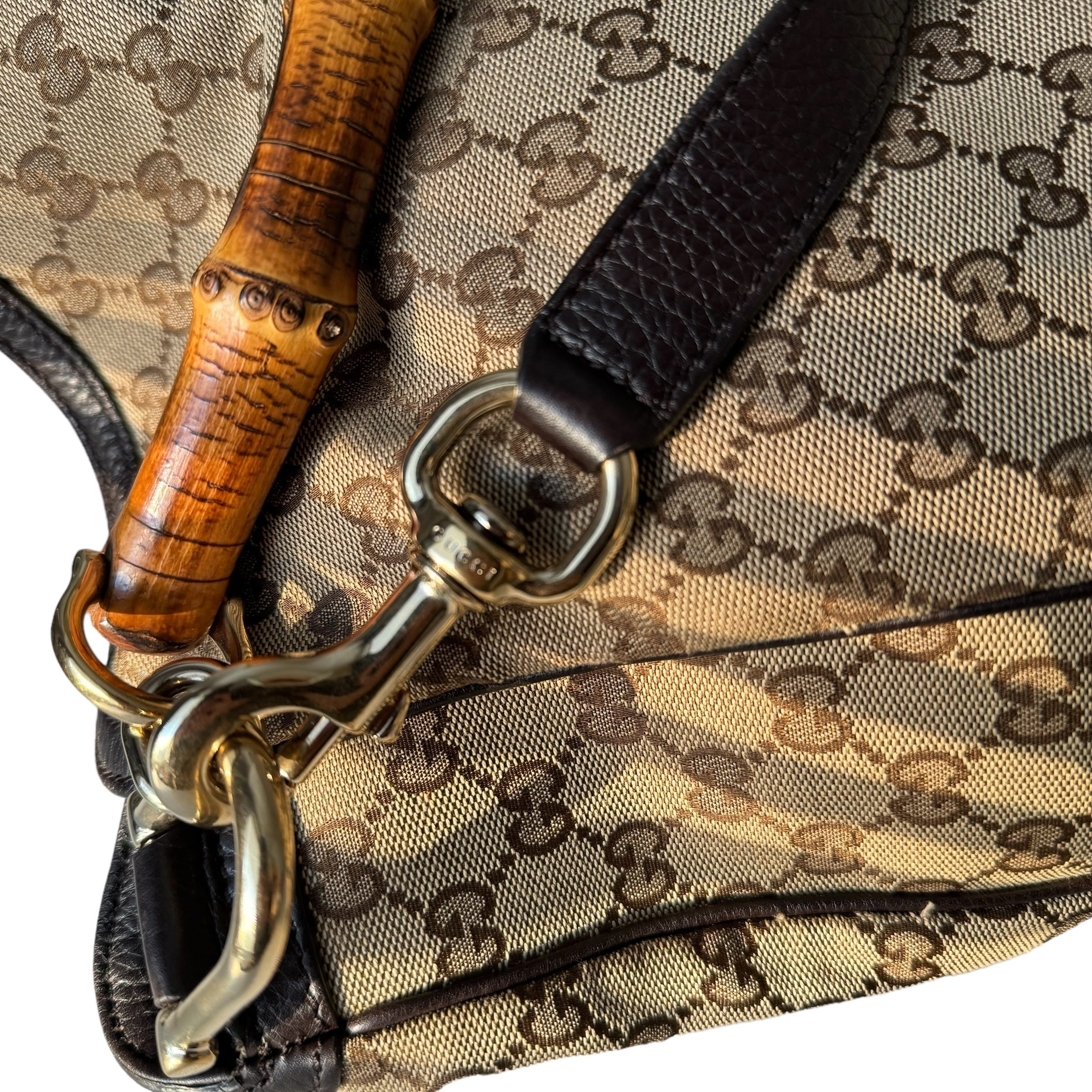Gucci GG Brown Canvas Bamboo With Detachable Strap Bag