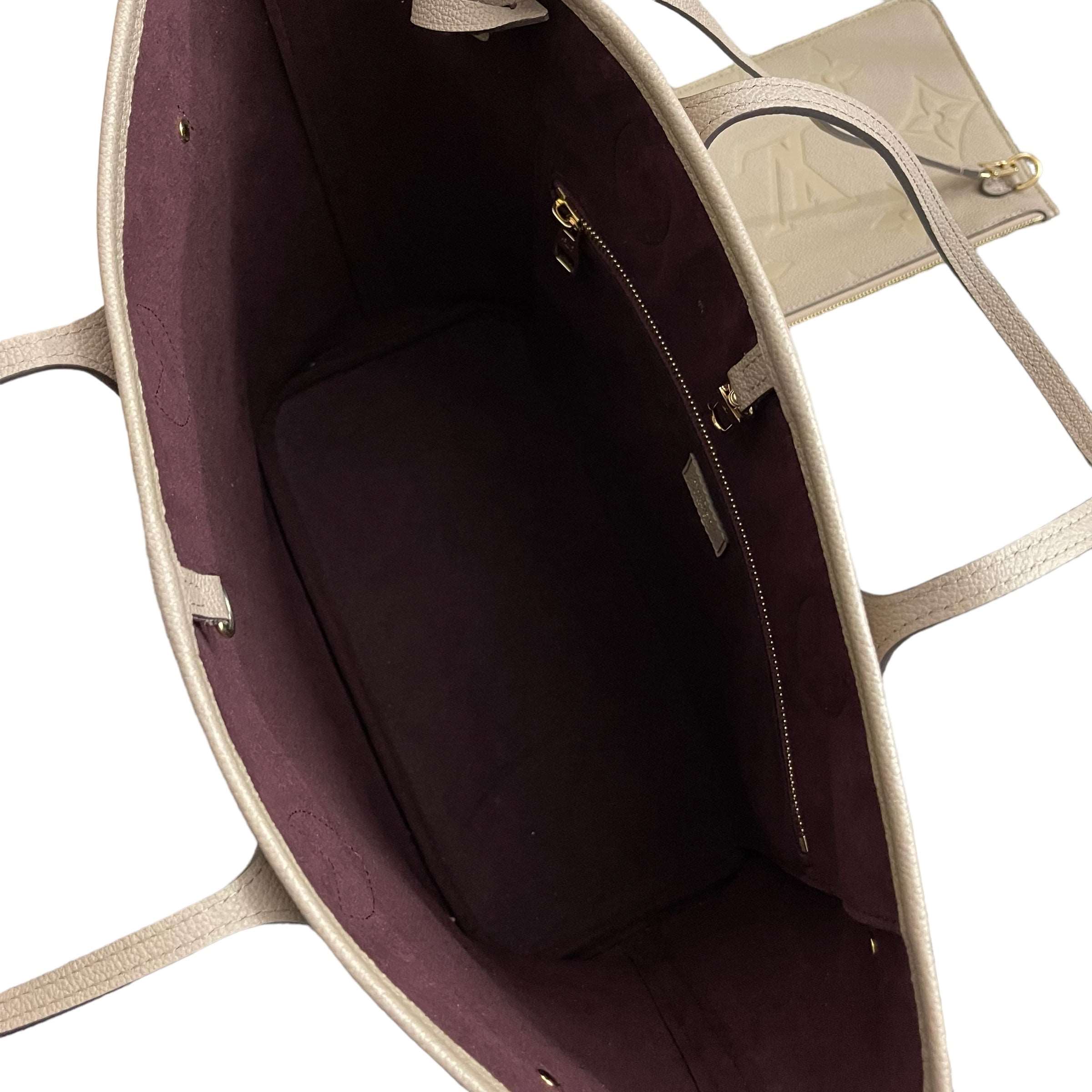 Louis Vuitton Neverfull MM Monogram Empreinte Leather in Dune colour.