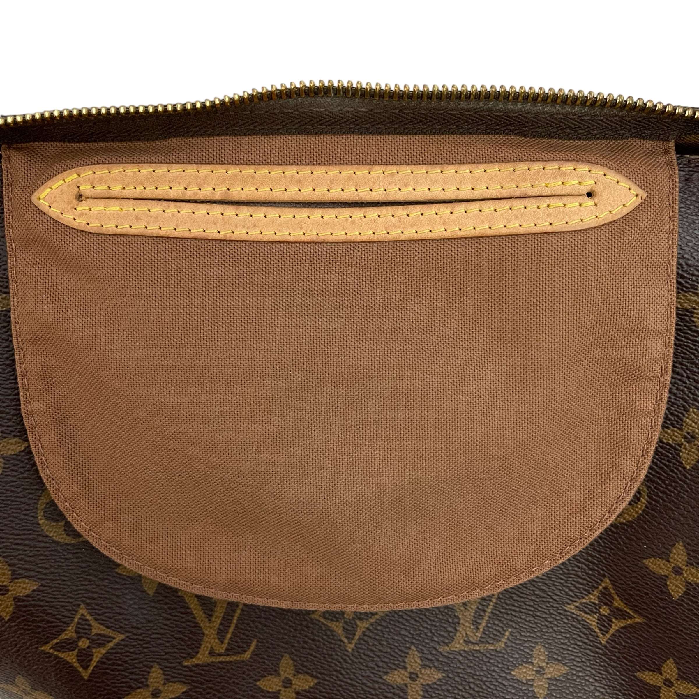 Exterior : Beautiful canvas without fading or any crack, some signs of wear, stains, spots, water marks and darkening on the leather trim, tarnished on the hardware. Honey patina and zipper works fine.
