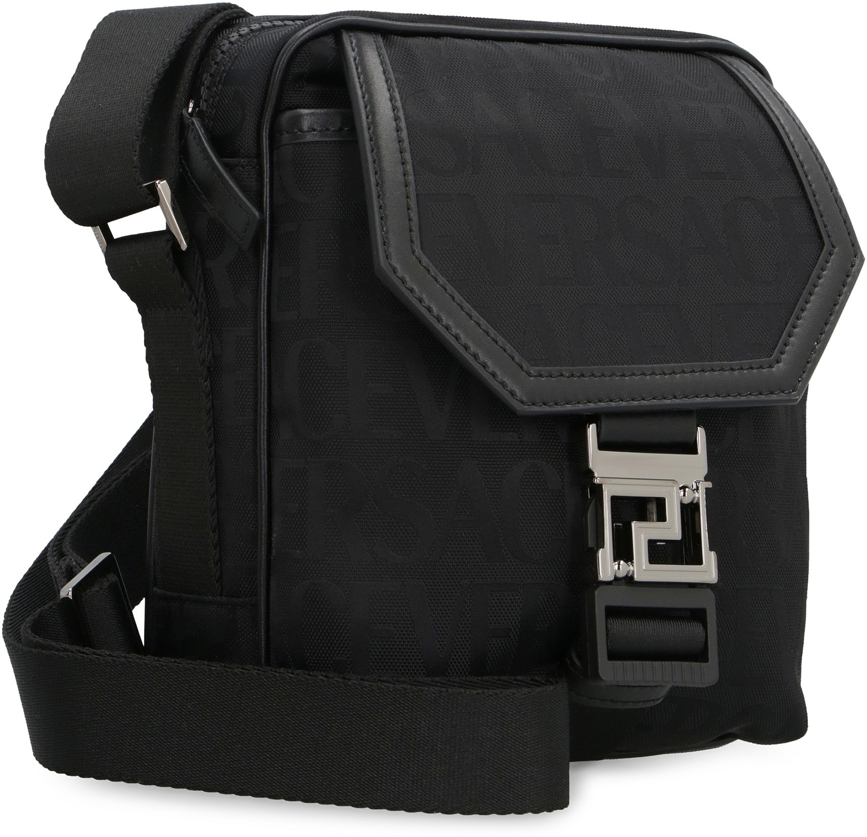 Step out in style with this sleek and sophisticated canvas messenger bag. The all-over logo print and leather trimming give it a modern, high-end look that is sure to turn heads. The top zippered closure and front flap pocket provide easy access to your essentials, while the adjustable fabric shoulder strap ensures a comfortable fit. The silver-tone metal hardware adds a touch of elegance, making this messenger bag the perfect accessory for any fashion-forward individual.